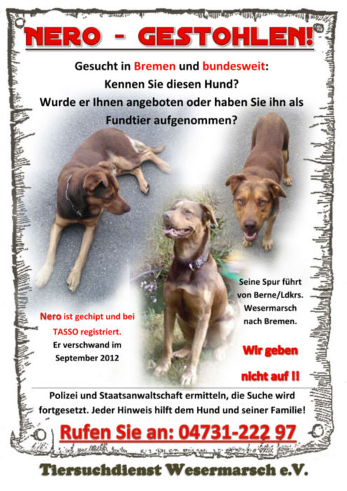 Stellen verteilt haben denn : ohne Eure Hilfe wäre "Nero" nicht nach Hause