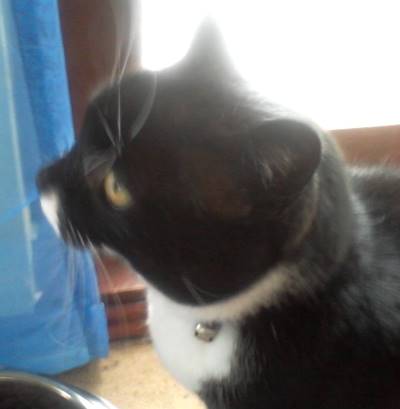 trägt evtl. lila Halsband mit Glöckchen |